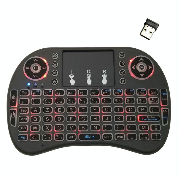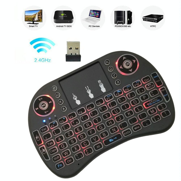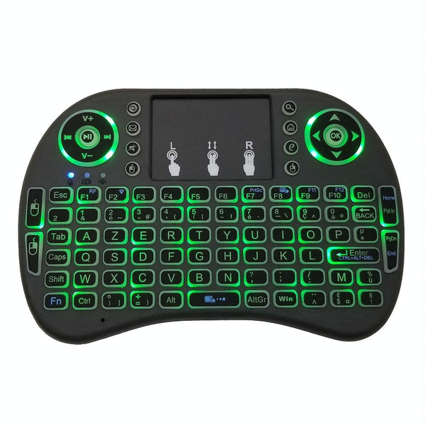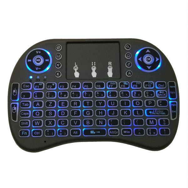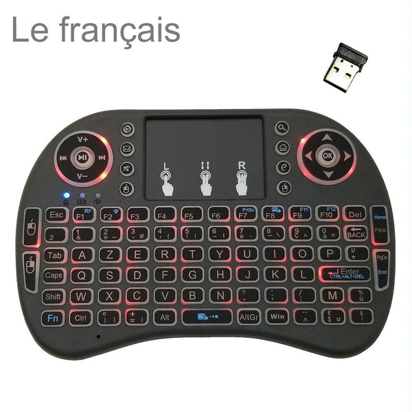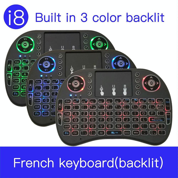 Support Language: French i8 Air Mouse Wireless Backlit Keyboard with Touchpad for Android TV Box & Smart TV & PC Tablet & Xbox360 & PS3 & HTPC/IPTV