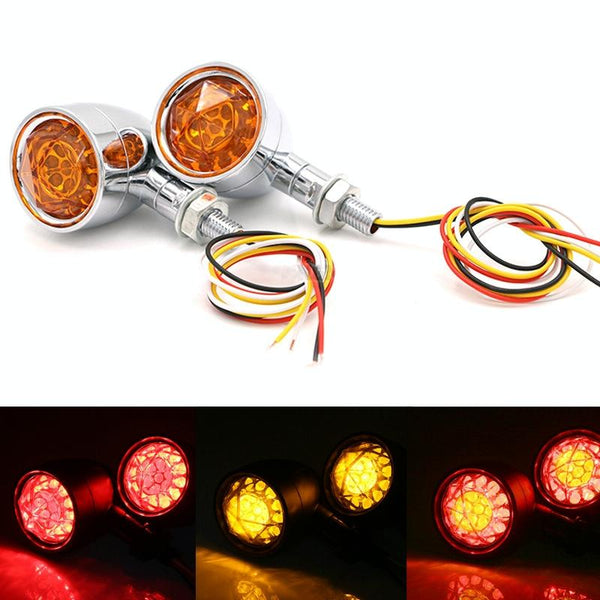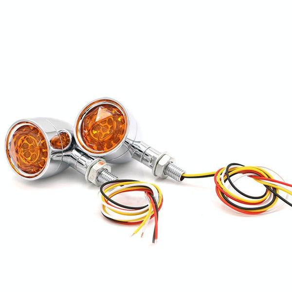 1pair Motorcycle Universal Retro LED Turn Signal Light(Electroplating Shell Yellow Cover)