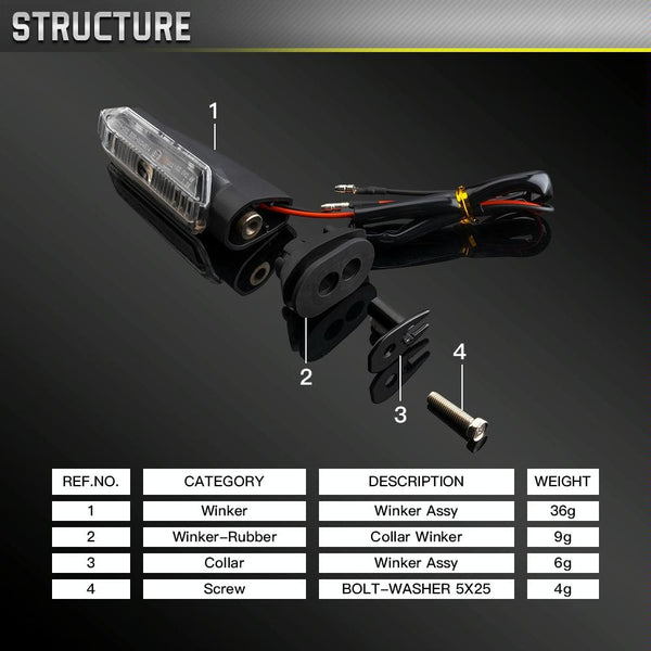 5. Wiring method: black wire harness ground wire negative (-), red wire harness to turn signal positive (+)