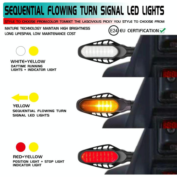 1. Headlight lighting mode: When the daytime running lights are activated, the white light will scan once and then turn into a steady white light. When the gear turn signal is activated, the white light will automatically go out, and the yellow light will flow into the water mode. After the turn signal ends, it will automatically return to white light.
