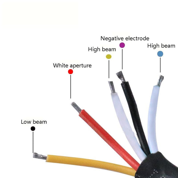 6. Line description: black line-negative pole, white line-high beam, yellow line-low beam, red line-white aperture, blue line-yellow aperture