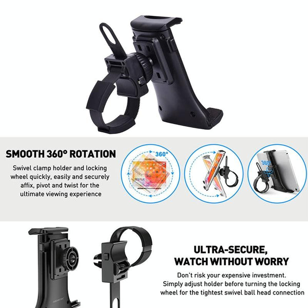 5. Smooth 360-degree rotating clamp and locking wheel for quick, easy and secure fixing