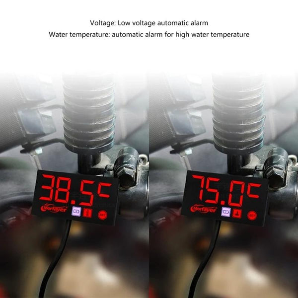 Two-in-one (voltage/water temperature): The red wire is connected to "+", the white wire is connected to negative "-", and the yellow and blue wires are the water temperature sensor wires.