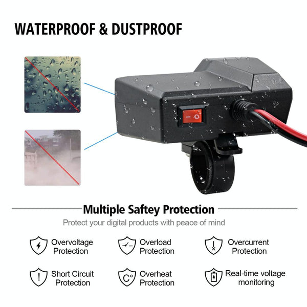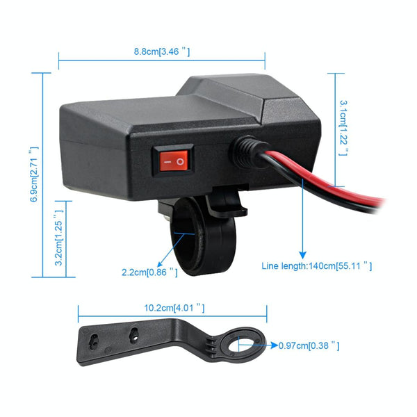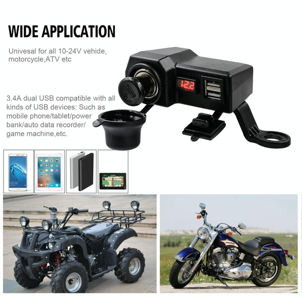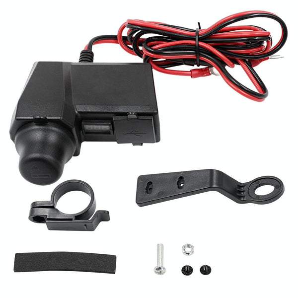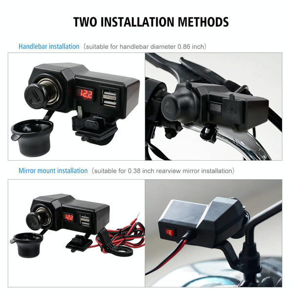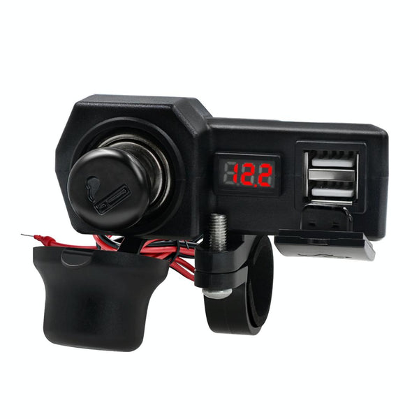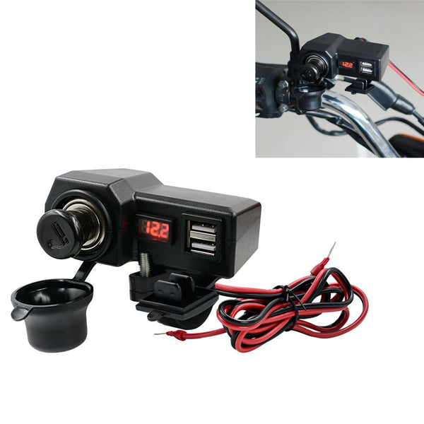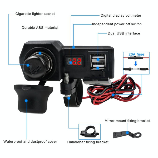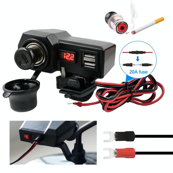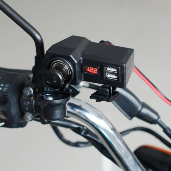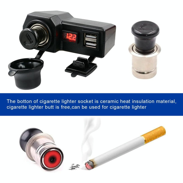 CS-1072B1 Motorcycle Dual USB Charger + Voltmeter with Cigarette Lighter & Cigarette Butts (Black)