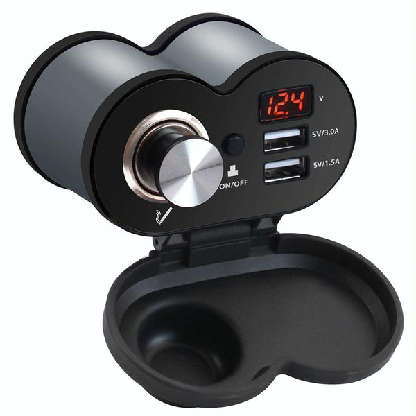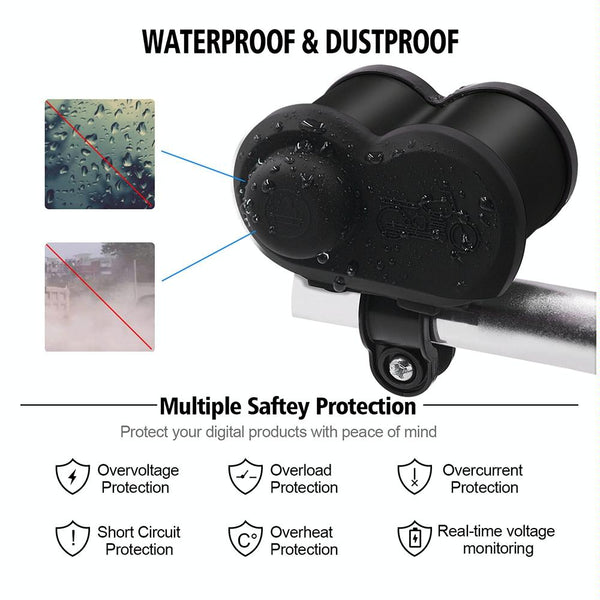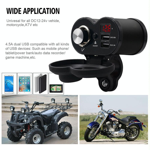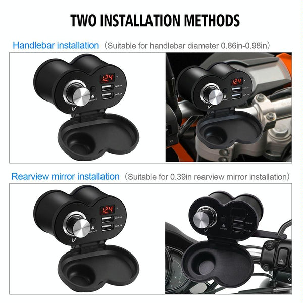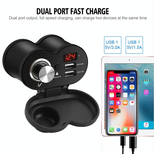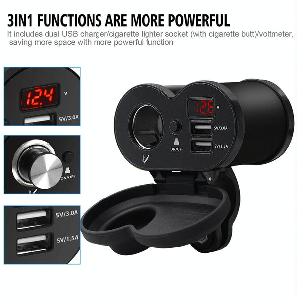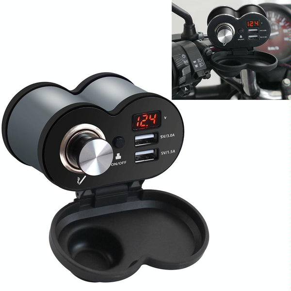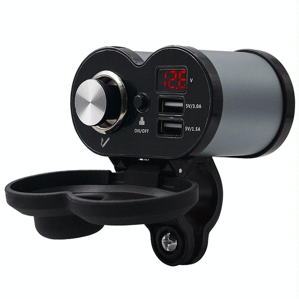 CS-834A3 Multi-function Motorcycle Waterproof Aluminium Alloy Mobile Phone Dual USB Charger Cigarette Lighter with Digital Display Switch(Grey)