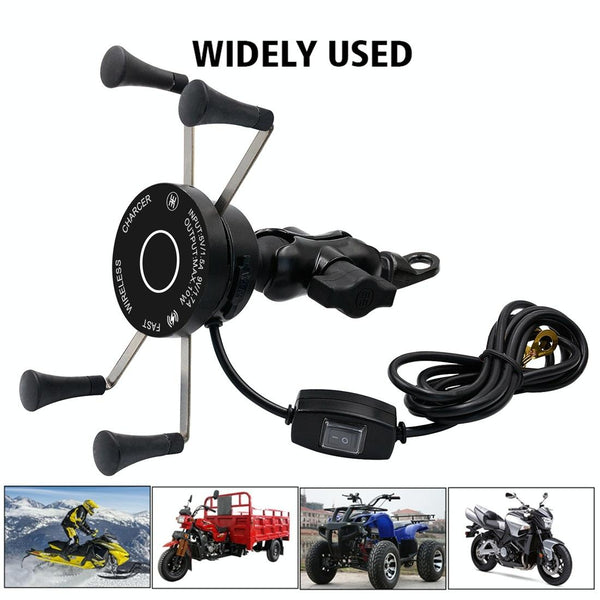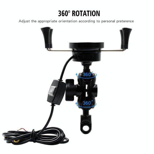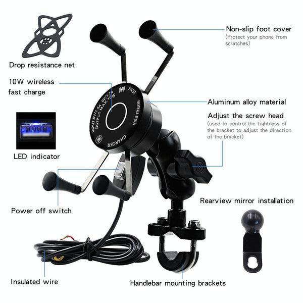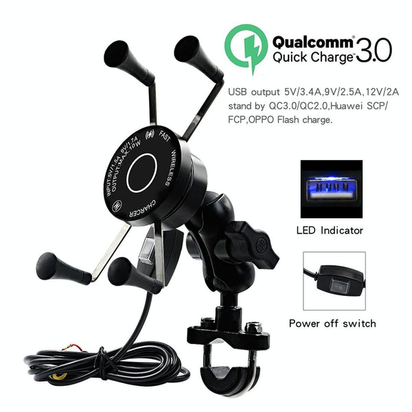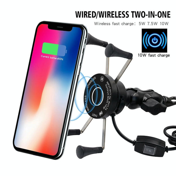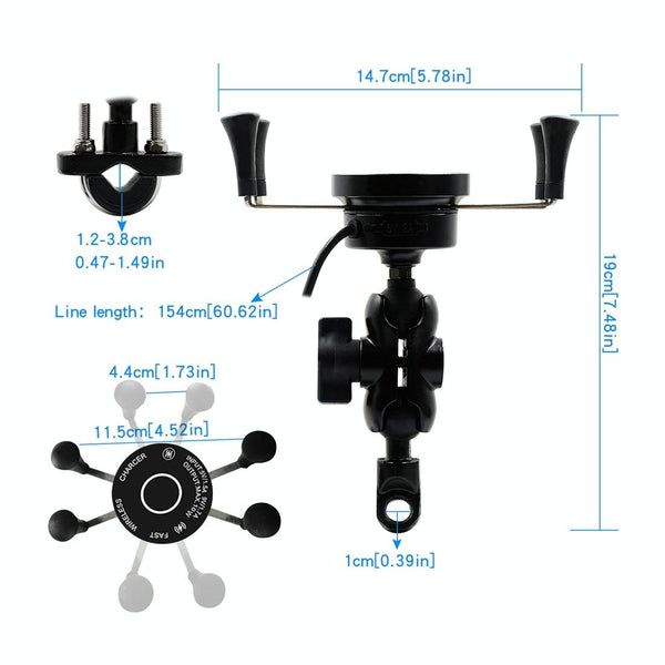 CS-878A1 Multi-function Motorcycle Wireless Wired Aluminum Alloy Mobile Phone Holder Charger (Black)