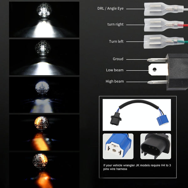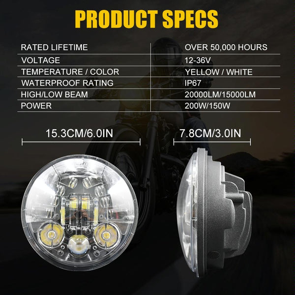 DC9-30V / 6000K / 3000K / 20000LM 5.75 inch Motorcycle Gradient Headlight