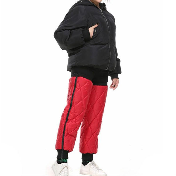 Electric Bike Winter Outdoor Riding Windproof Cold Protection Plus Velvet Warm Leg Guard Knee Pads, Style:70cm Red