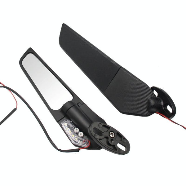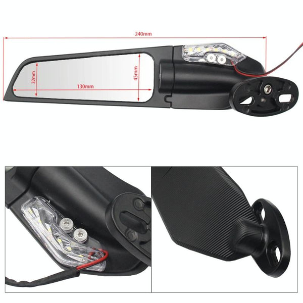 Fixed Wind Wing Rearview Mirror Spoiler with Light Motorcycle Modification