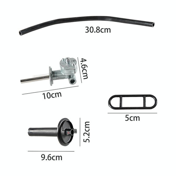 5. Size: fuel line length about 30.8cm, fuel valve about 10 x 4.6cm, lever about 9.6 x 5.2cm