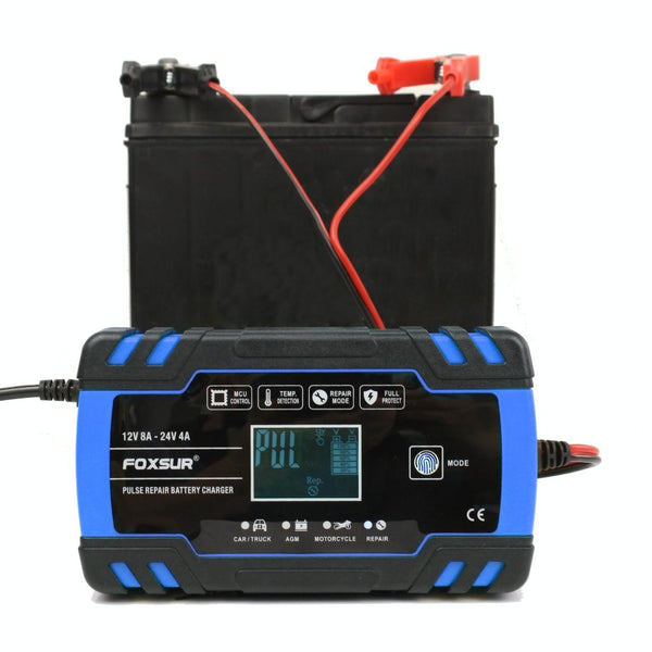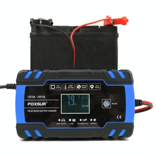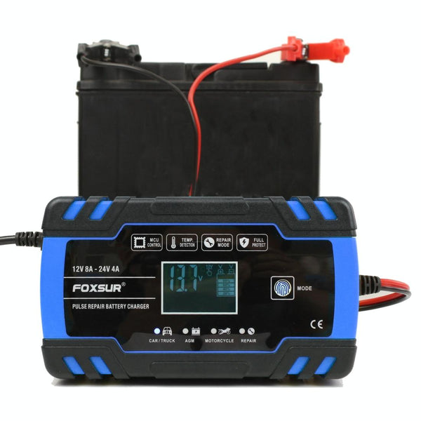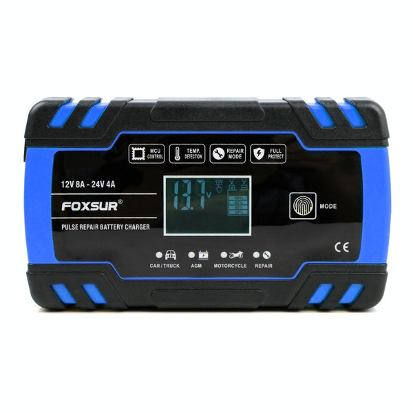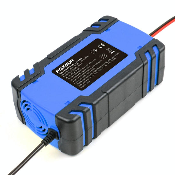 FOXSUR 12V-24V Car Motorcycle Truck Repair Battery Charger AGM Charger, US Plug (Blue)