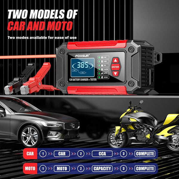 FOXSUR Cars Motorcycles 12V Lithium Cattery Charger With Battery Detection(UK Plug)