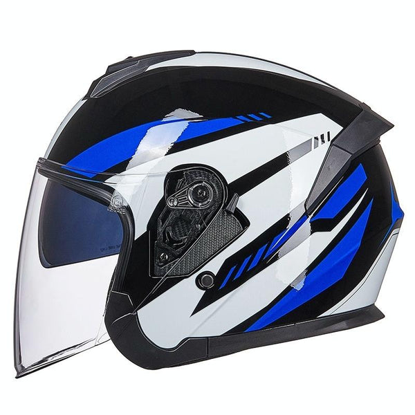 GXT Electric Vehicle Four Seasons Sun Protection & Windshield Double Lens Helmet, Size: M(Bright Black Blue)