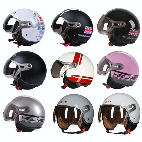 GXT Electric Vehicle Half Cover Helmet Four Seasons Retro Helmet, Size: M(Matte Black Flower)