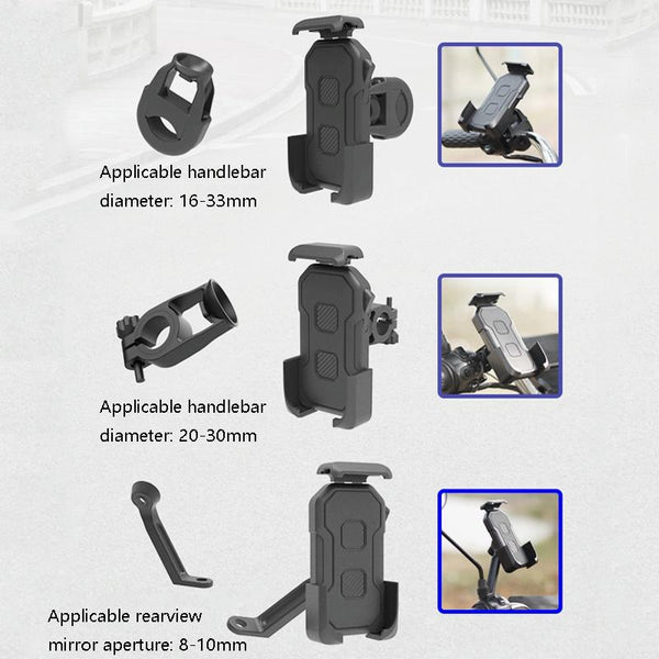 3. Applicable handlebar diameter: U-shaped handlebar style: 16-33mm, round handlebar style: 20-30mm, rearview mirror style adaptable aperture: 8-10mm