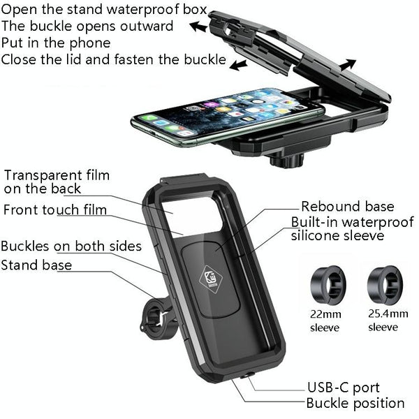 Kewig Bicycle Motorcycle Waterproof Box Mobile Phone Bracket Riding Touch Mobile Phone Fixed Seat(M18S-B1 Small Handlebar Installation)