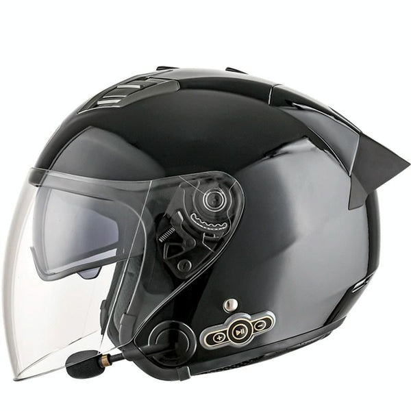 KUQIBAO Motorcycle Smart Bluetooth Sun Protection Double Lens Safety Helmet, Size: L(Bright Black+Black Tail)