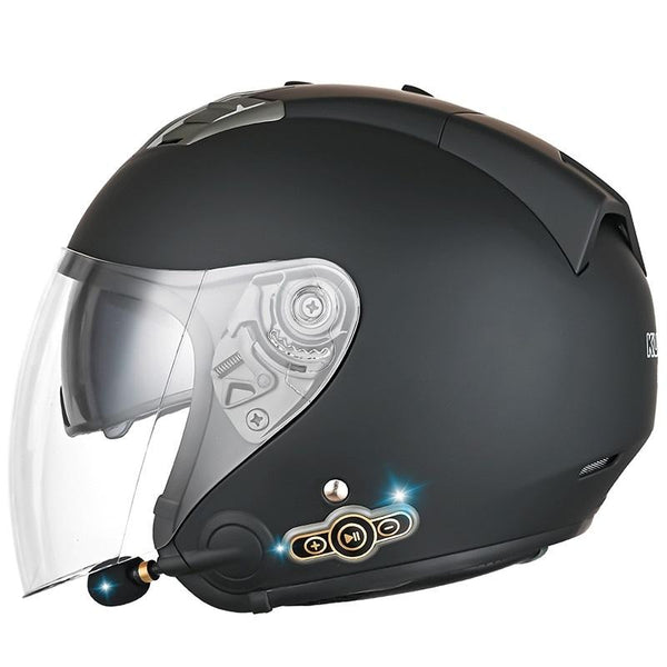 KUQIBAO Motorcycle Smart Bluetooth Sun Protection Double Lens Safety Helmet, Size: L(Matte Black)