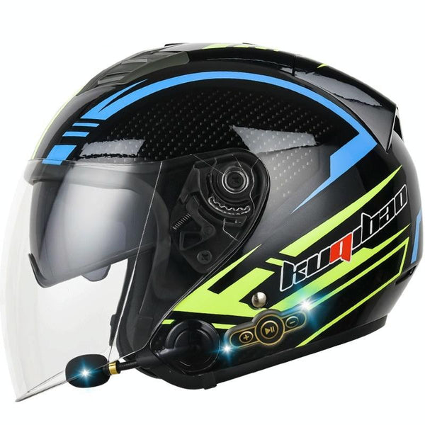 KUQIBAO Motorcycle Smart Bluetooth Sun Protection Double Lens Safety Helmet, Size: M(Glossy Black Phantom Fiber)
