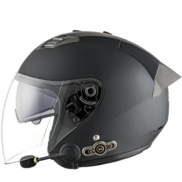 KUQIBAO Motorcycle Smart Bluetooth Sun Protection Double Lens Safety Helmet, Size: XXL(Matte Black+Gray Tail)