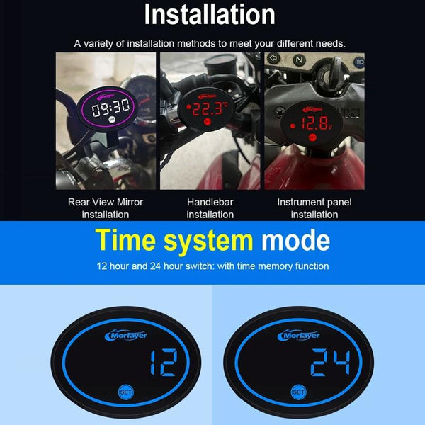 12. Single-function voltmeter, 2-in-1 (temperature + voltage), 4-in-1 with monochrome aperture (time + temperature + voltage + racing timer), 4-in-1 with 7-color aperture
