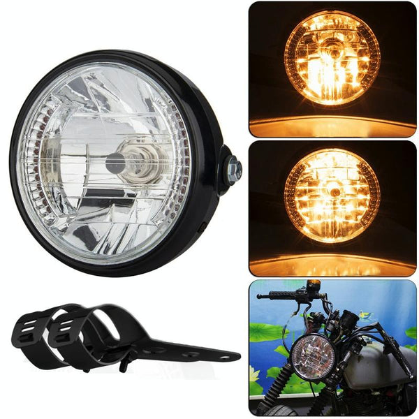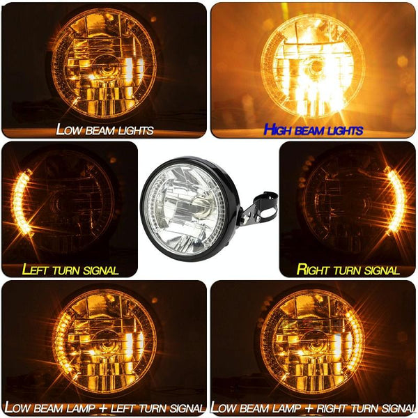 Motorcycle 7 Inch LED Headlamp Angel Ring Steering Function With Bracket(Shock Absorber Diameter 28-36mm)