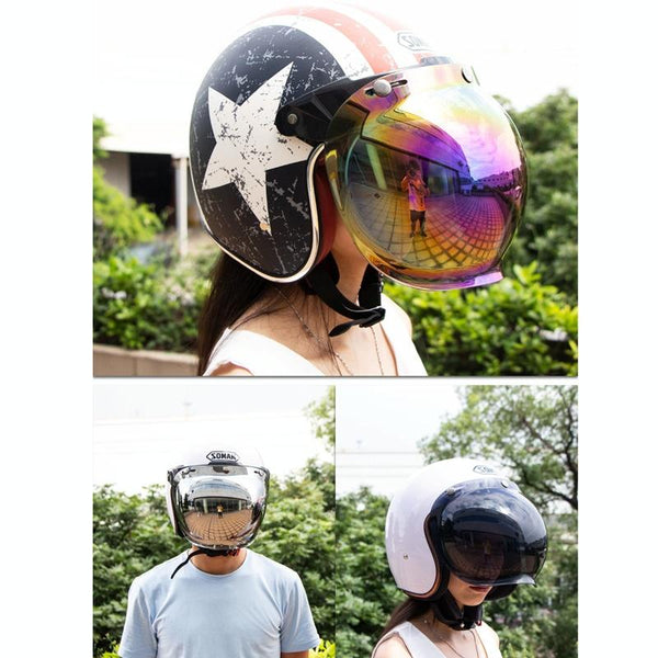 Motorcycle Helmet Three-Button Windproof Lens With Bracket(Plating Blue)