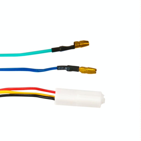 Black wire negative pole, yellow wire running light (white/red/blue light + red light), red wire brake light (white/red/blue light + red light), dark blue line turning left (yellow light), light blue line turning right ( yellow light)