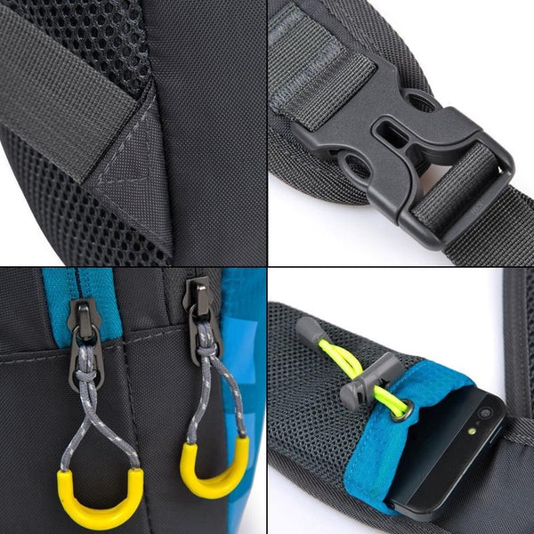 Motorcycle Waterproof Nylon Backpack Convenient Motorbike Chest Bag Backpack Camping Hiking Running Outdoor Sport Bag(Blue + Yellow)