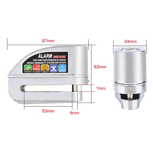 1. The lock is a dedicated designed 2 in 1 security alarm lock with electronic alarm and mechanical burglary protection system, use keys to turn on / off alarm device. suitable for disc locks on motorcycle, bicycle or scooter, luxury windows and doors as well.