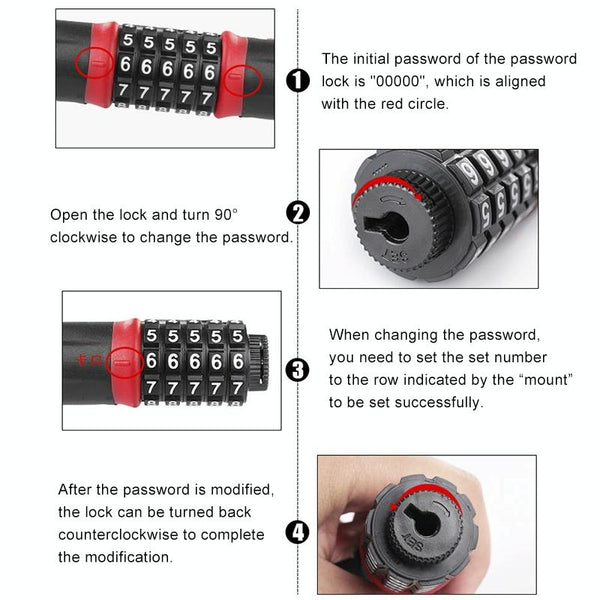Motorcycles / Bicycle Chain Lock 5 Digit Password Anti-theft Password Lock, Length: 0.6m