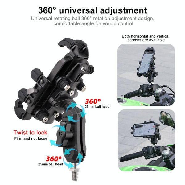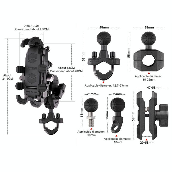 MOTOSLG Crab Motorcycle Phone Clamp Bracket M10 Ballhead Mount(Black)