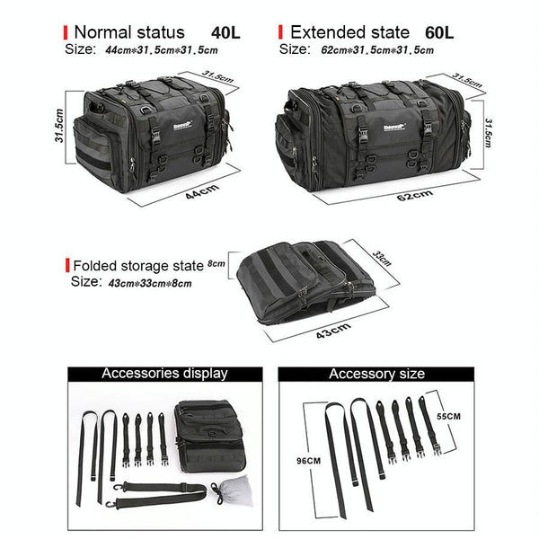 Rhinowalk MT4060 Large-capacity Foldable Expandable Tail Bag for Motorcycle Riding with Rain Cover(Black)