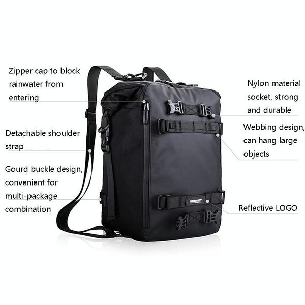 Rhinowalk Multi-Function Motorcycle Rear Seat Bag Combination Rear Shelf Pannier, Colour: Black 10L