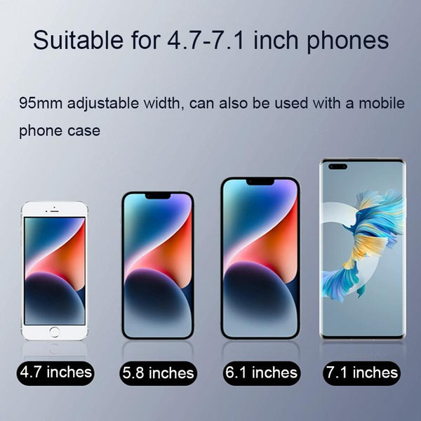 6. Suitable for 4.7-7.1-inch mobile phones, 95mm adjustable width, can also be used with a mobile phone case