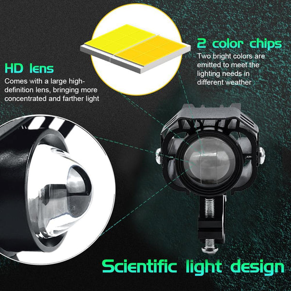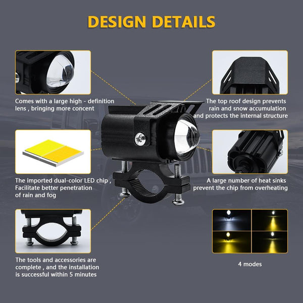 1. The LED light is equipped with 6 10-watt high-intensity 3570 dual-color chips. 4 modes: white light/yellow light/yellow light+white light/strobe, these 4 modes can be selected under different conditions.