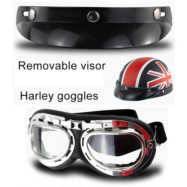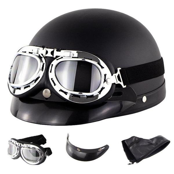 Soman Electromobile Motorcycle Half Face Helmet Retro Harley Helmet with Goggles(Matte Black)