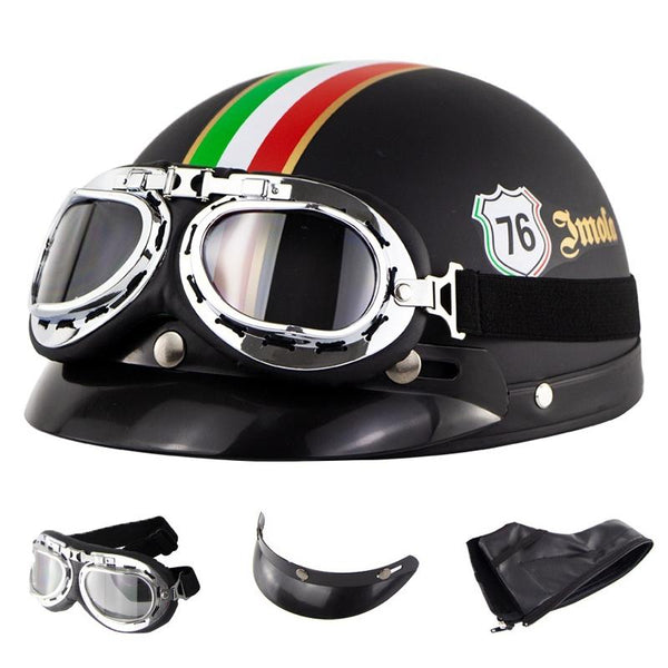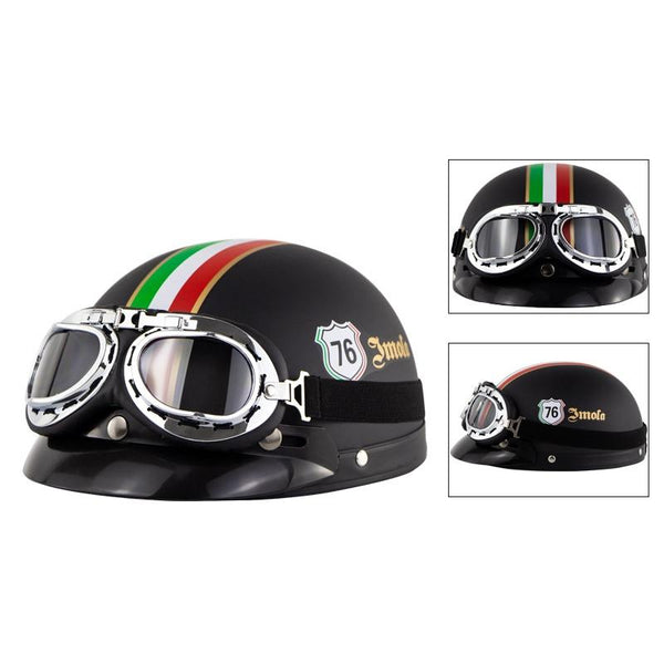 Soman Electromobile Motorcycle Half Face Helmet Retro Harley Helmet with Goggles(Matte Black Italy NO.76)