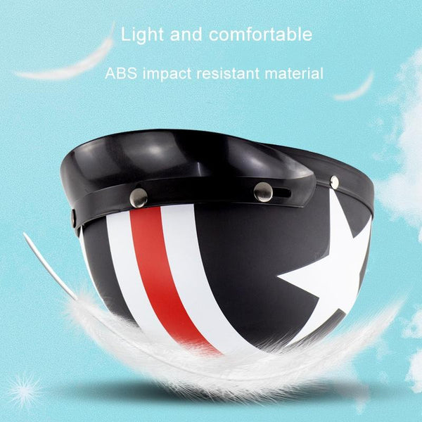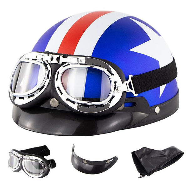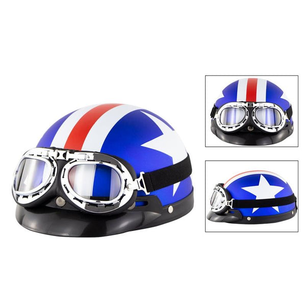 Soman Electromobile Motorcycle Half Face Helmet Retro Harley Helmet with Goggles(Matte Blue French White Star)