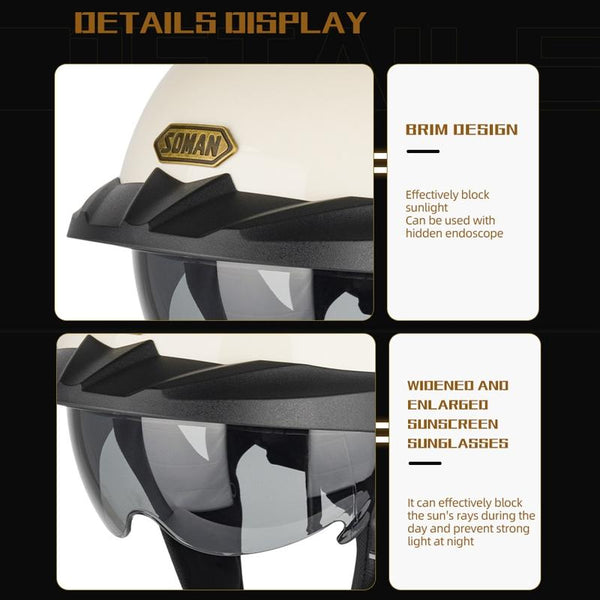 SOMAN Motorcycle Half Helmet Adjustable Helmet With Inner Mirror, Size: L(White)