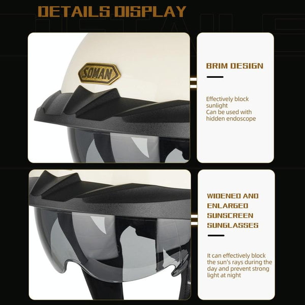 SOMAN Motorcycle Half Helmet Adjustable Helmet With Inner Mirror, Size: M(White)