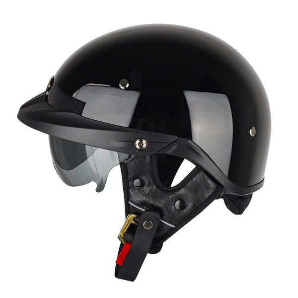 SOMAN Motorcycle Half Helmet Adjustable Helmet With Inner Mirror, Size: XL(Bright Black)