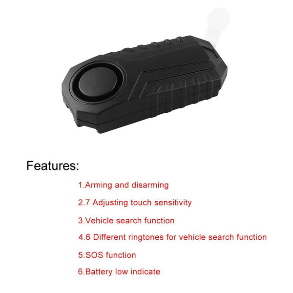 1. Vibrationally triggered alarm suitable for Bikes, Motorcycles, Doors or Windows.