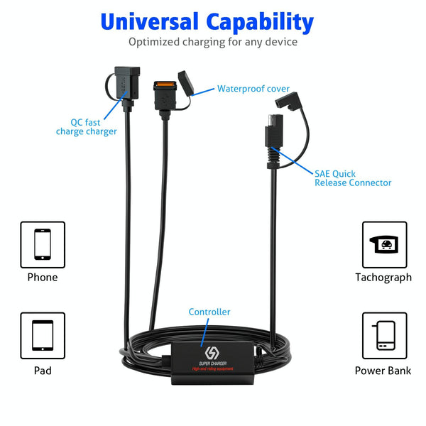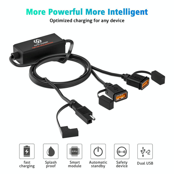 WUPP CS-1186A1 Motorcycle SAE Dual USB Fast Charging Charger