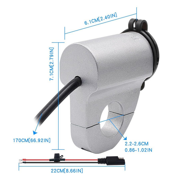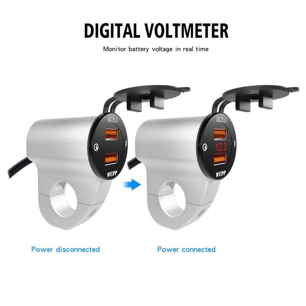 WUPP ZH-975A3 Motorcycle Aluminum Alloy Waterproof Mobile Phone Double QC3.0 Quick Charging Charger with Voltmeter(Silver)