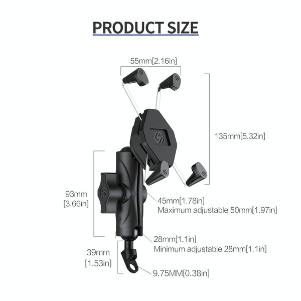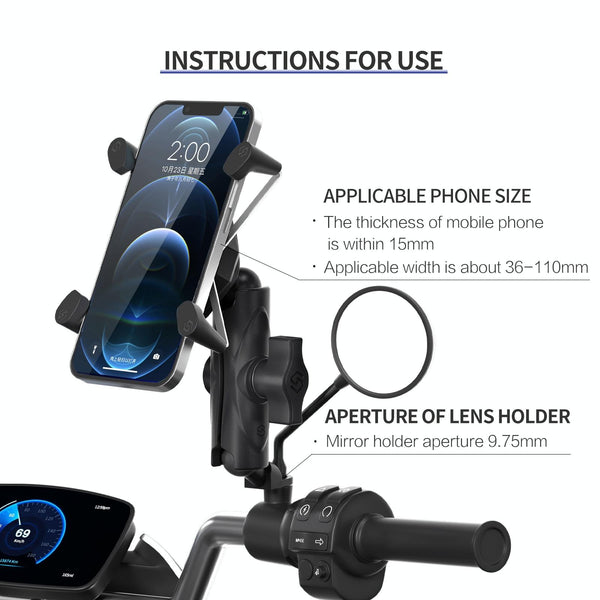 ZH-1558B1 Motorcycle Rear Mirror X-shape Aluminum Alloy Phone Holder