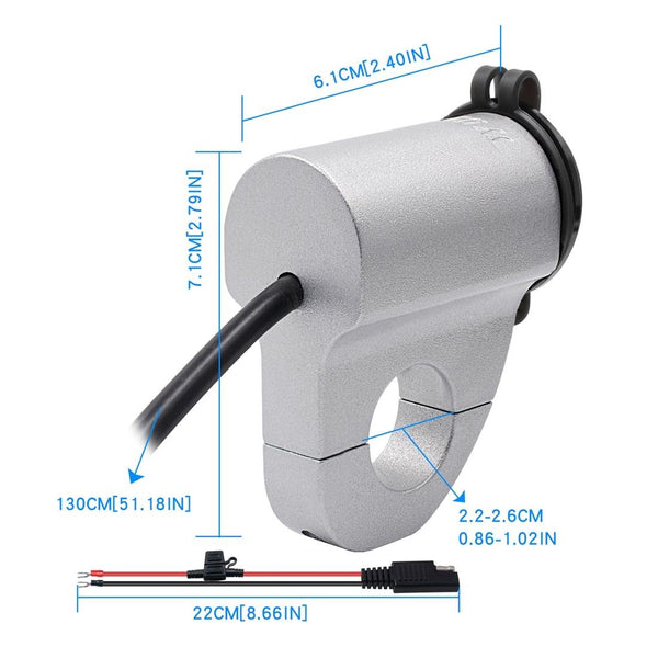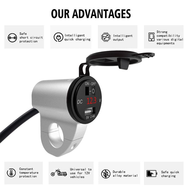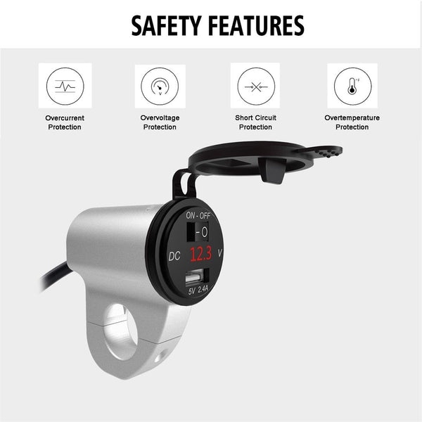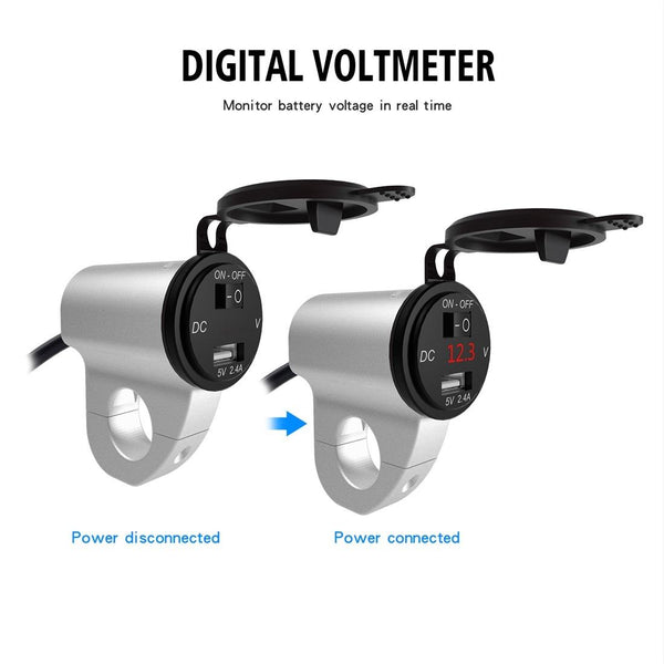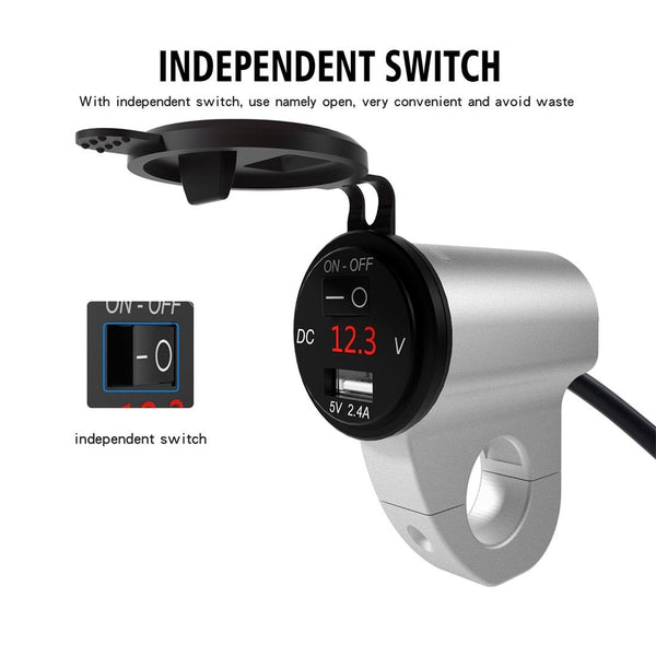 ZH-975A1 Motorcycle Aluminum Alloy Waterproof Mobile Phone Single USB Charger with Red Voltmeter(Silver)