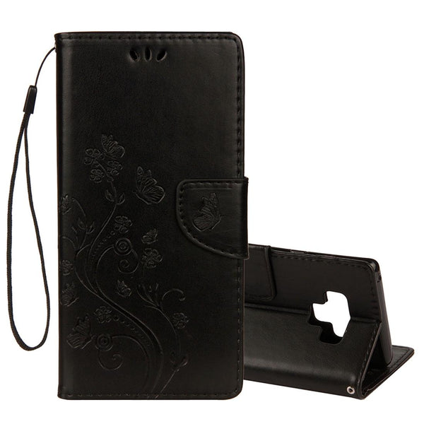 Embossed Butterfly Pattern Horizontal Flip Leather Case with Card Slot & Holder & Wallet & Lanyard For Galaxy Note9(Black)