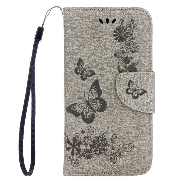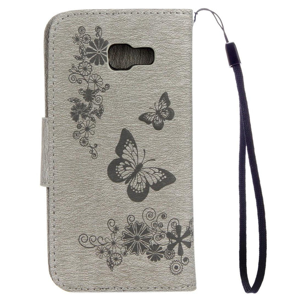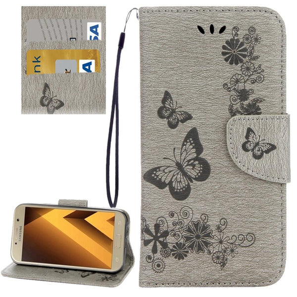 For Galaxy A3 (2017) / A320 Butterflies Embossing Horizontal Flip Leather Case with Holder & Card Slots & Wallet & Lanyard (Grey)