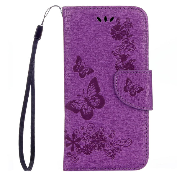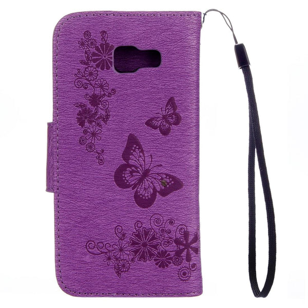 For Galaxy A3 (2017) / A320 Butterflies Embossing Horizontal Flip Leather Case with Holder & Card Slots & Wallet & Lanyard (Purple)